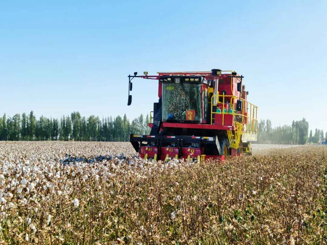 采棉機穿梭田間。
