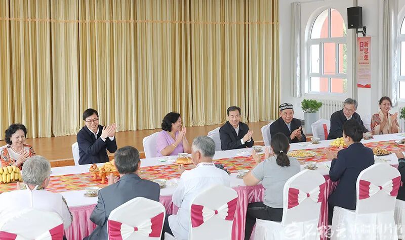 9月10日,自治區(qū)黨委書(shū)記、兵團(tuán)黨委第一書(shū)記、第一政委陳小江來(lái)到兵團(tuán)第九師161團(tuán),親切看望慰問(wèn)“七一勛章”獲得者魏德友。石榴云/新疆日?qǐng)?bào)記者 崔志堅(jiān)攝