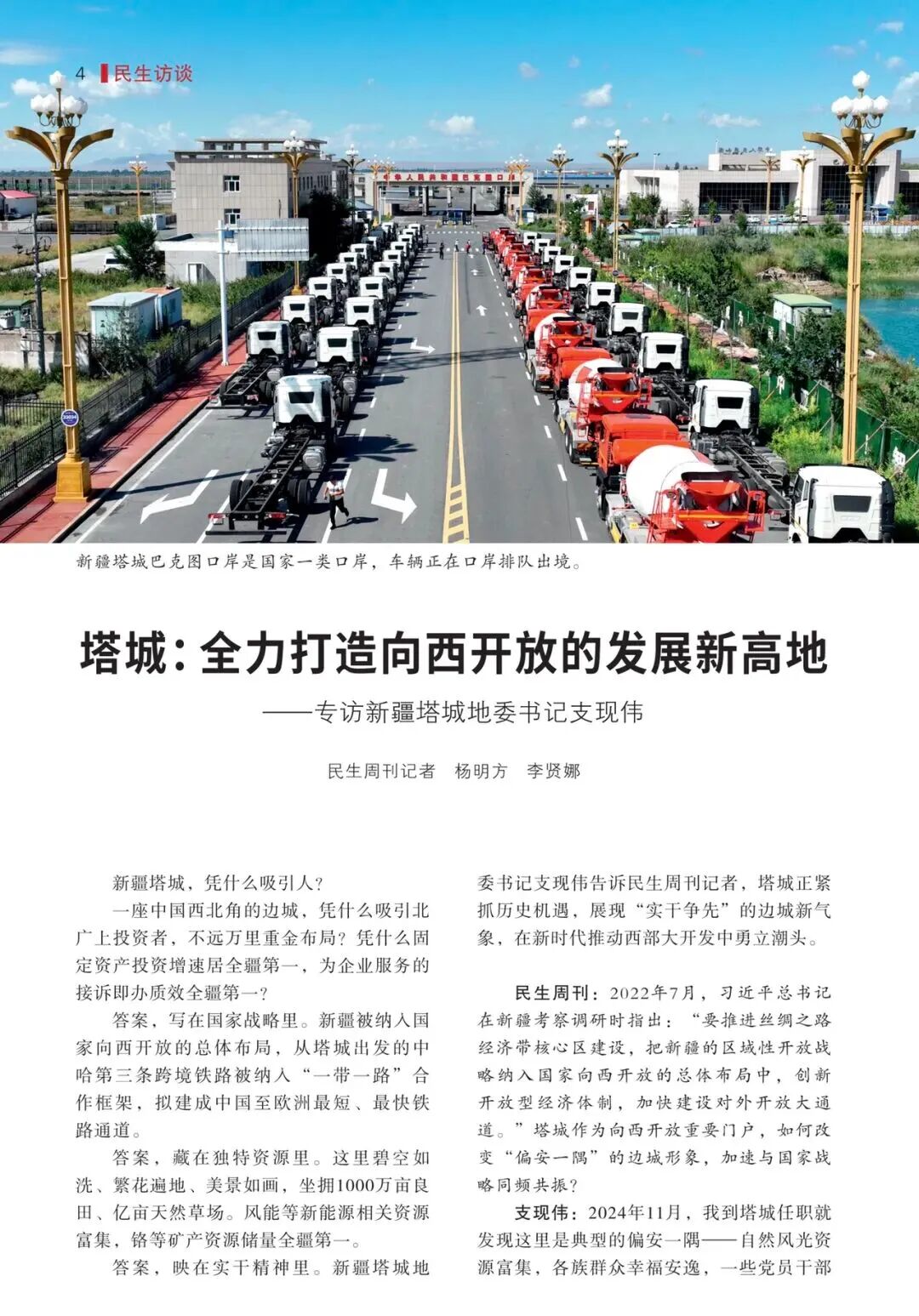 答案,映在實干精神里。新疆塔城地委書記支現(xiàn)偉告訴民生周刊記者,塔城正緊抓歷史機遇,展現(xiàn)“實干爭先”的邊城新氣象,在新時代推動西部大開發(fā)中勇立潮頭。
