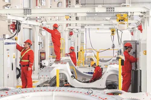 金風科技(塔城)風電裝備有限公司員工正在進行作業(yè)生產(chǎn)。