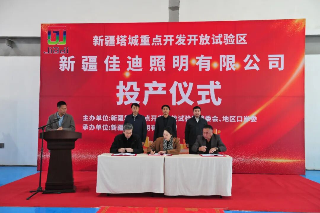 10月16日,新疆塔城重點開發(fā)開放試驗區(qū)新疆佳迪照明有限公司投產(chǎn)儀式在先行發(fā)展區(qū)舉行。