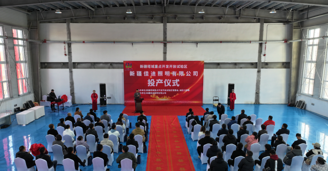 新疆塔城重點開發(fā)開放試驗區(qū)新疆佳迪照明有限公司投產(chǎn)儀式現(xiàn)場。