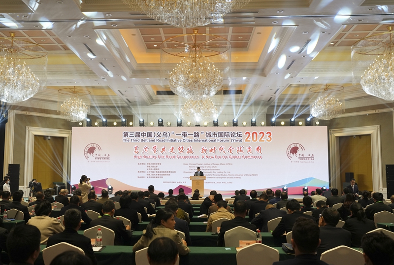 這是2023年12月8日在浙江省義烏市拍攝的第三屆中國(義烏)“一帶一路”城市國際論壇現(xiàn)場。新華社記者 翁忻旸 攝