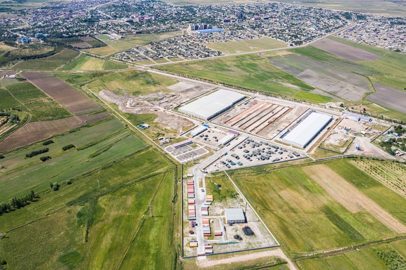 這是2019年5月21日在塔吉克斯坦丹加拉拍攝的中泰紡織廠(無人機(jī)照片)。新華社記者 張若玄 攝