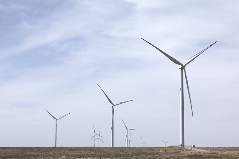 這是2023年4月3日在哈薩克斯坦札納塔斯拍攝的札納塔斯100兆瓦風(fēng)電項(xiàng)目風(fēng)機(jī)。新華社發(fā)(奧斯帕諾夫?攝)