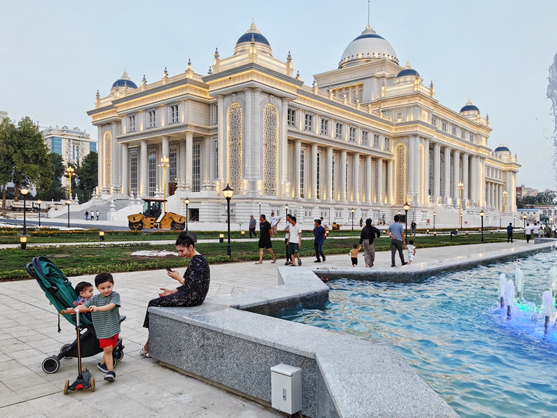 在總統(tǒng)府正門前平臺(tái)駐足,拉赫蒙總統(tǒng)指向不遠(yuǎn)處中國(guó)援建的議會(huì)大樓和政府大樓,告訴習(xí)近平主席:“議會(huì)大樓前廣場(chǎng)已成為市民們休閑避暑的好去處,是杜尚別的新打卡地?!?/p>