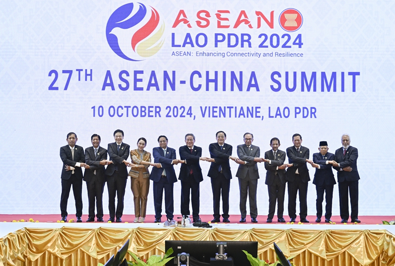 當?shù)貢r間10月10日,國務(wù)院總理李強在老撾萬象出席第27次中國-東盟(10+1)領(lǐng)導人會議。這是會前集體合影。新華社記者 張領(lǐng) 攝