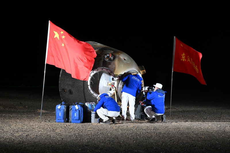 11月4日,神舟十八號載人飛船返回艙在東風(fēng)著陸場著陸。