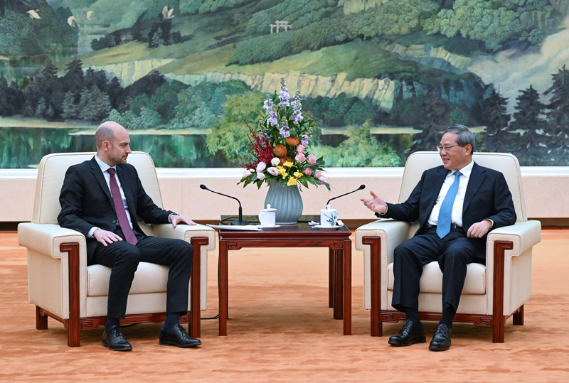 3月27日,國(guó)務(wù)院總理李強(qiáng)在北京人民大會(huì)堂會(huì)見(jiàn)法國(guó)外長(zhǎng)巴羅。新華社記者 饒愛(ài)民 攝
