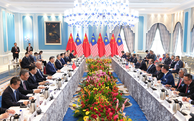 習(xí)近平指出,馬方將今年東盟的主題定為“包容性和可持續(xù)性”,體現(xiàn)了對時局的深刻洞察。中方支持馬來西亞發(fā)揮東盟輪值主席國作用,愿同地區(qū)國家一道,盡早簽署中國-東盟自由貿(mào)易區(qū)升級議定書,以開放包容、團結(jié)合作抵制“脫鉤斷鏈”、“小院高墻”和濫征關(guān)稅,以和平、合作、開放、包容的亞洲價值觀回應(yīng)弱肉強食的叢林法則,以亞洲的穩(wěn)定性和確定性應(yīng)對世界的不穩(wěn)定和不確定。