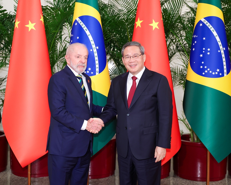 新華社北京5月13日電 5月13日下午,國務院總理李強在北京人民大會堂會見來華進行國事訪問的巴西總統盧拉。