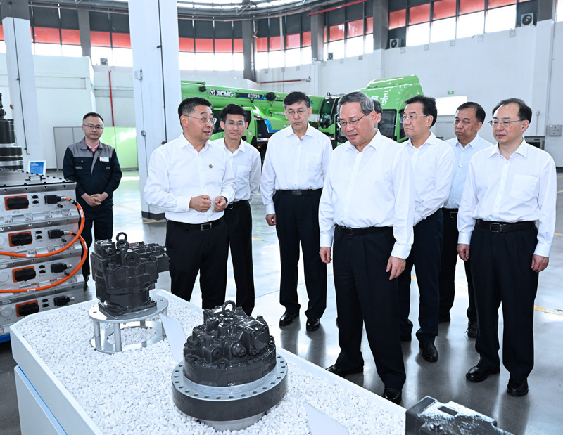 6月16日至18日,中共中央政治局常委、國(guó)務(wù)院總理李強(qiáng)在江蘇調(diào)研。這是6月16日,李強(qiáng)在徐州江蘇匯智高端工程機(jī)械創(chuàng)新中心有限公司,聽取實(shí)驗(yàn)項(xiàng)目等匯報(bào),察看核心零部件和產(chǎn)品。新華社記者 饒愛民 攝