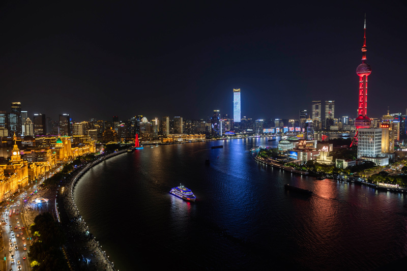 上海陸家嘴、外灘、北外灘夜景(2025年4月30日攝)。新華社記者 王翔 攝