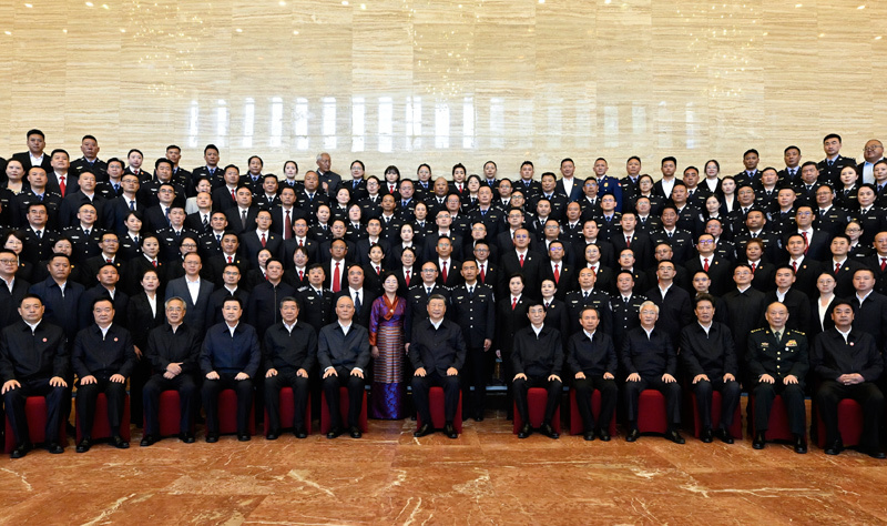 8月20日下午,中共中央總書(shū)記、國(guó)家主席、中央軍委主席習(xí)近平在拉薩親切接見(jiàn)西藏自治區(qū)政法干警代表,并同大家合影留念。新華社記者 殷博古 攝
