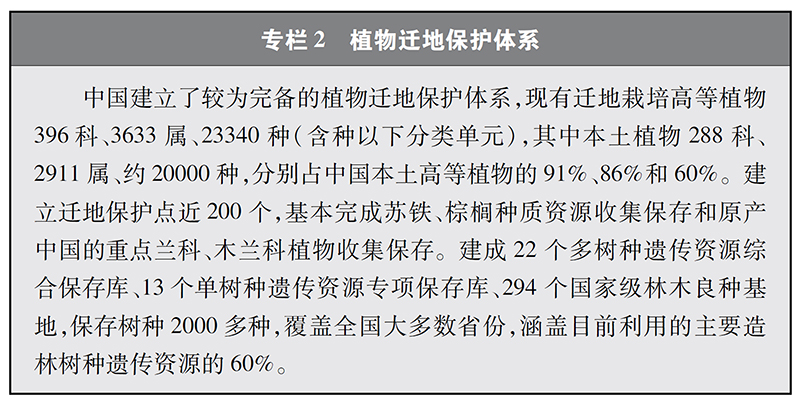 中國持續(xù)加大遷地保護力度,系統(tǒng)實施瀕危物種拯救工程,生物遺傳資源的收集保存水平顯著提高,遷地保護體系日趨完善,成為就地保護的有效補充,多種瀕危野生動植物得到保護和恢復。