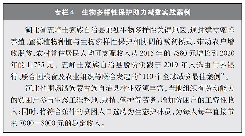 推動履約取得明顯成效。中國為推動實現(xiàn)2020年全球生物多樣性保護目標和聯(lián)合國2030年可持續(xù)發(fā)展目標作出積極貢獻。自發(fā)布《中國生物多樣性保護戰(zhàn)略與行動計劃》(2011-2030年)以來,中國通過完善法律法規(guī)和體制機制、加強就地和遷地保護、推動公眾參與、深化國際合作等政策措施,有力推動改善了生態(tài)環(huán)境。其中,設立陸地自然保護區(qū)、恢復和保障重要生態(tài)系統(tǒng)服務、增加生態(tài)系統(tǒng)的復原力和碳儲量等3項目標超額完成,生物多樣性主流化、可持續(xù)管理農(nóng)林漁業(yè)、可持續(xù)生產(chǎn)和消費等13項目標取得良好進展。