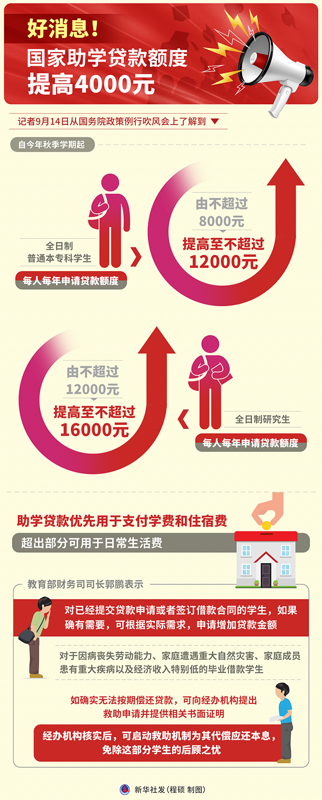 圖表:好消息!國家助學(xué)貸款額度提高4000元
