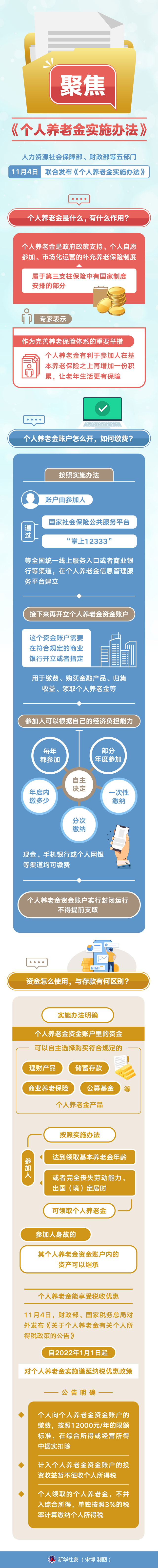 人力資源社會保障部、財政部等五部門11月4日聯(lián)合發(fā)布《個人養(yǎng)老金實施辦法》。個人養(yǎng)老金是什么,怎么繳納?與存款有什么區(qū)別?圍繞這些大家關(guān)注的問題,記者進行了采訪了解。