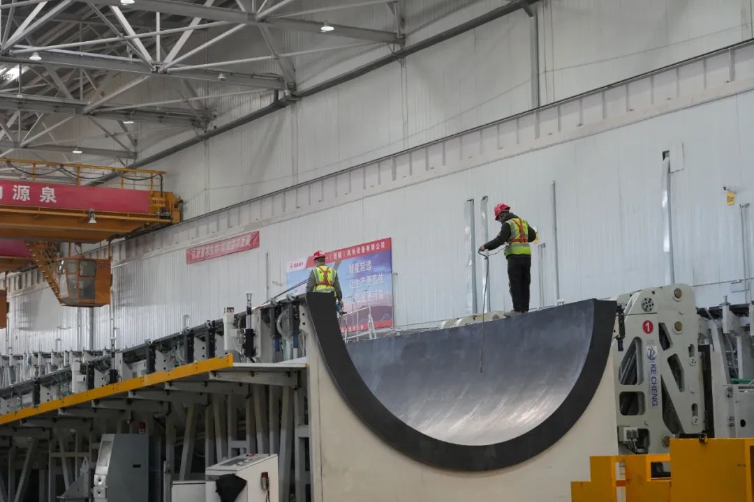 連日來,三一(塔城)風(fēng)電設(shè)備有限公司的改擴(kuò)建工作正在如火如荼地開展。3月23日,走進(jìn)三一(塔城)風(fēng)電設(shè)備有限公司生產(chǎn)車間施工現(xiàn)場,機(jī)器轟鳴,工人們正在改造112米葉片模具,為即將到來的生產(chǎn)高峰積極籌備。另一車間,最后兩套84米葉片正在進(jìn)行打磨、噴漆的收尾程序。