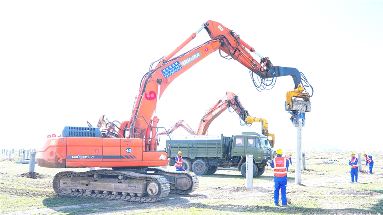 4月1日,項(xiàng)目全面開工。目前,正在進(jìn)行管樁、道路、升壓站等工程建設(shè),已完成光伏板基礎(chǔ)管樁施工2.2萬根,完成投資4.3億元。根據(jù)工期計劃,項(xiàng)目將于今年年內(nèi)全容量并網(wǎng)發(fā)電。